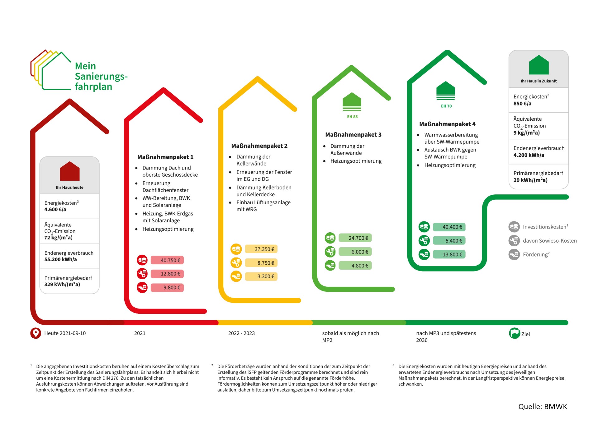 Der Sanierungsfahrplan ist nichts anderes als eine individuelle Vor-Ort-Beratung, die dem Eigentümer Energieeinsparpotentiale in einem mehrseitigen Dokument aufzeigt.